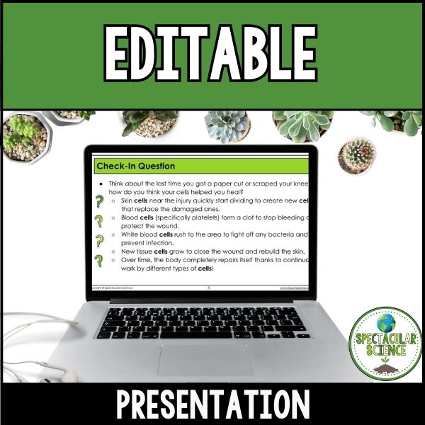 Pro Tip: Use the comprehension questions throughout the presentation as natural stopping points for quick partner or group discussions — it helps students talk through new concepts and boosts their confidence with cell structure vocabulary before moving into labs or more detailed activities!