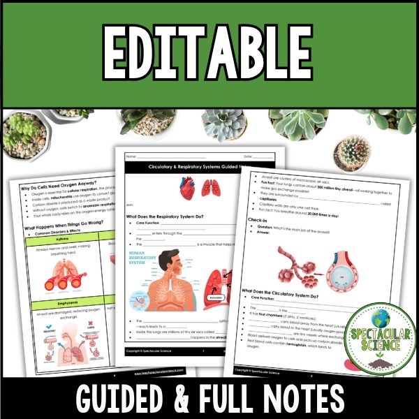 Help your students understand the life-saving teamwork between the heart and lungs with this engaging, high-quality Circulatory & Respiratory Systems Presentation & Guided Notes! Designed to answer the essential question, “How do the circulatory and respiratory systems work together to keep you alive?”, this resource provides a clear, structured, and visually engaging overview of how these two vital systems function and interact.
