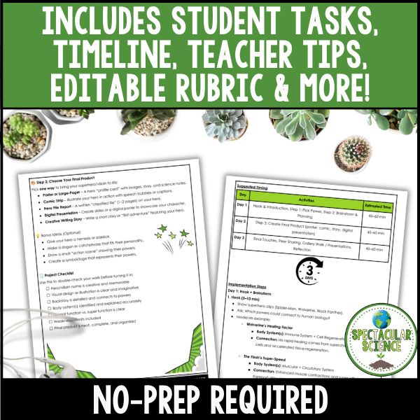 Bring science to life with this fun and creative project! Your students will design a superhero or villain whose powers are based on exaggerated human body systems. This 3-day project blends biology, critical thinking, and creativity to help students explore how real body systems work—while letting their imaginations run wild!
