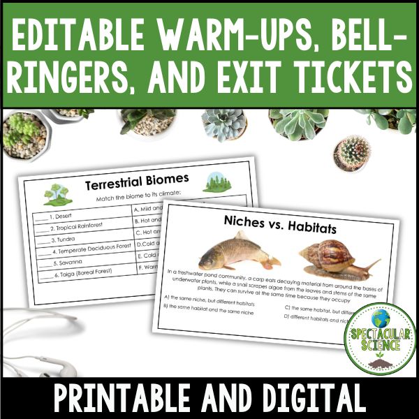 Perfect for warm-ups, bell ringers, stations, early finishers, exit tickets, review days, or spiral review, these cards help students move beyond memorization and into deeper thinking. With real-life scenarios, data interpretation, and problem-solving prompts, students actively apply ecological concepts in ways that actually make sense.
