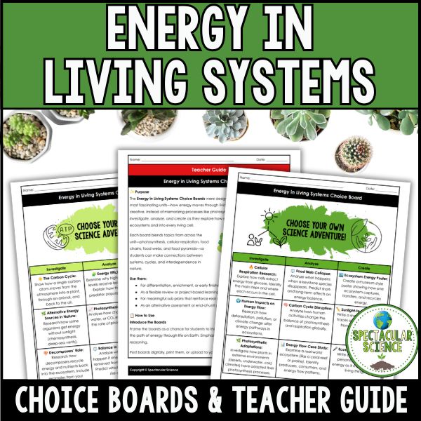 Give your students meaningful choice while reinforcing one of biology’s most important big ideas—how energy fuels all life. These boards help every learner think like a scientist and see the living world as an interconnected web of energy and matter.