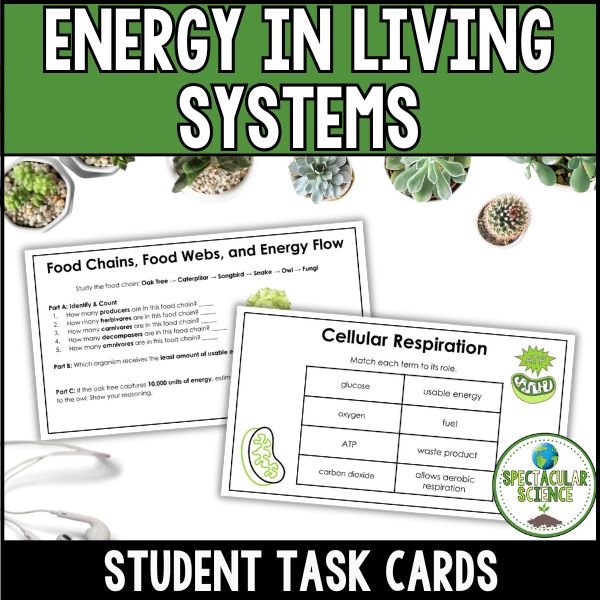 These Energy in Living Systems Task Cards make it easy to keep students engaged while reinforcing important biology concepts. Perfect for middle school or introductory high school biology classrooms.