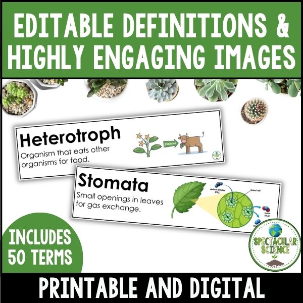 This set includes 50 carefully selected, NGSS-aligned terms that support students as they explore how energy moves from the sun to producers, through food chains, and into cells as usable ATP. Each word wall card features a student-friendly definition and a clear visual cue, making complex processes more accessible and easier to retain.