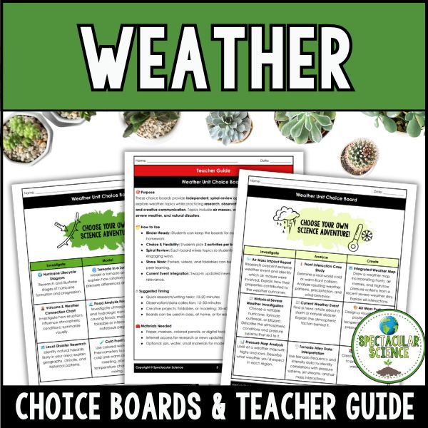 Give your students meaningful, independent choices while reinforcing weather concepts and skills. These choice boards aren’t “busywork”—they’re engaging, flexible, and designed to keep every student thinking like a meteorologist!