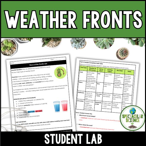 Perfect for NGSS-aligned middle and high school Earth science, this lab goes far beyond memorizing symbols. Students create realistic water-based models, observe density-driven movement, diagram each front, analyze patterns, and communicate their understanding using a structured CER response.